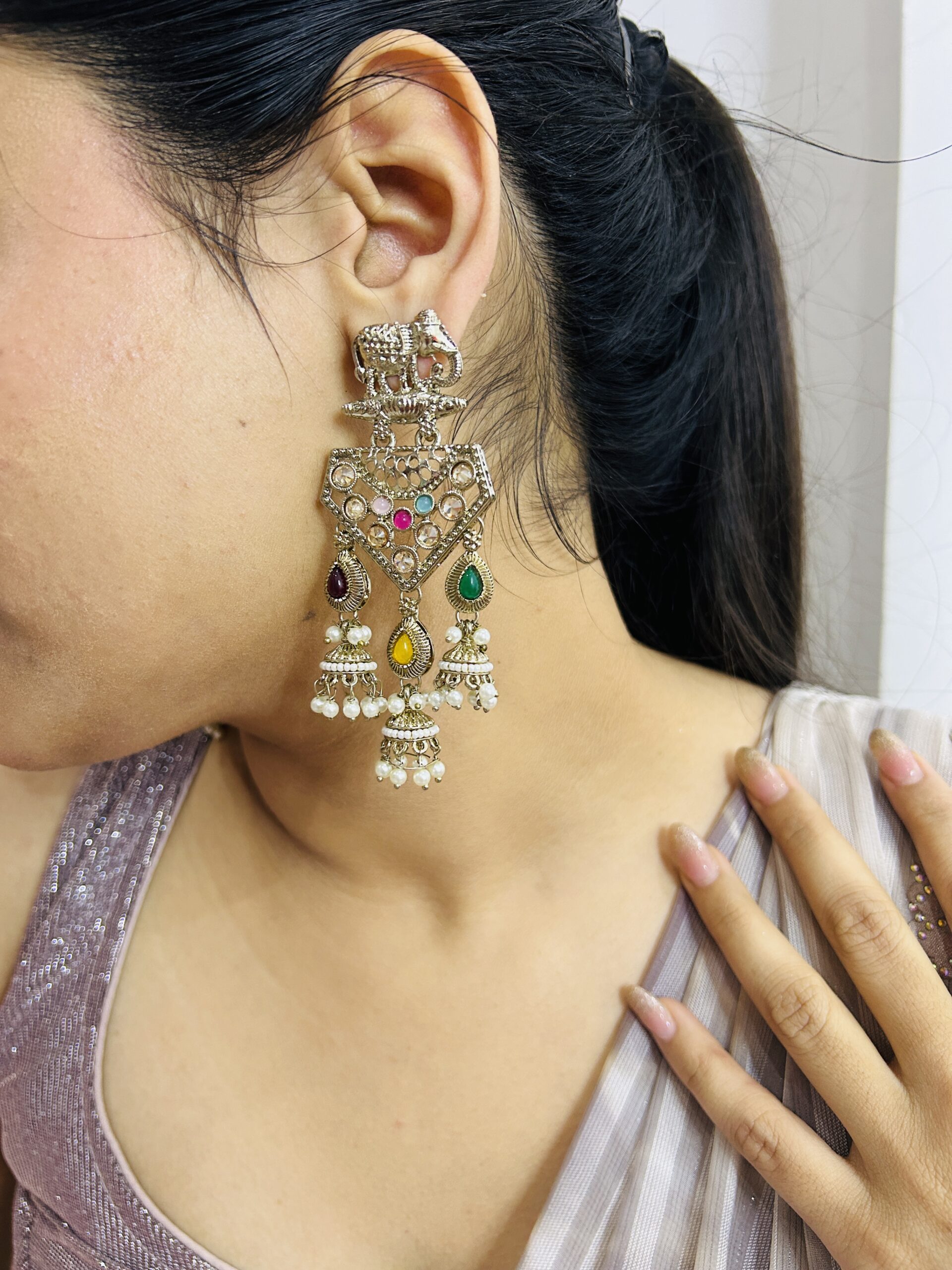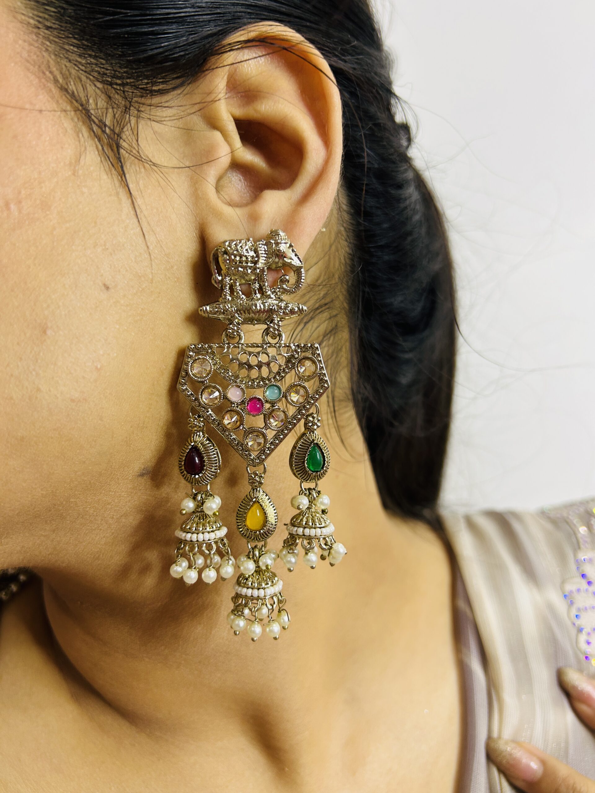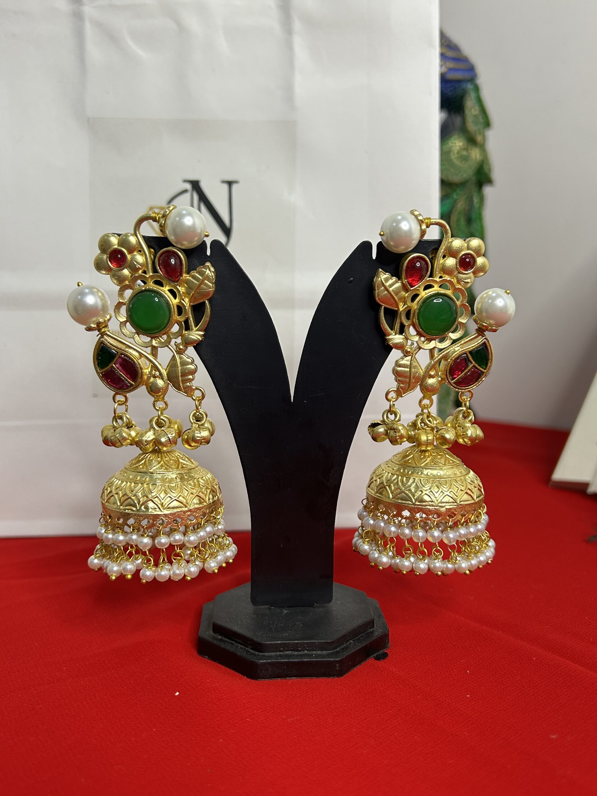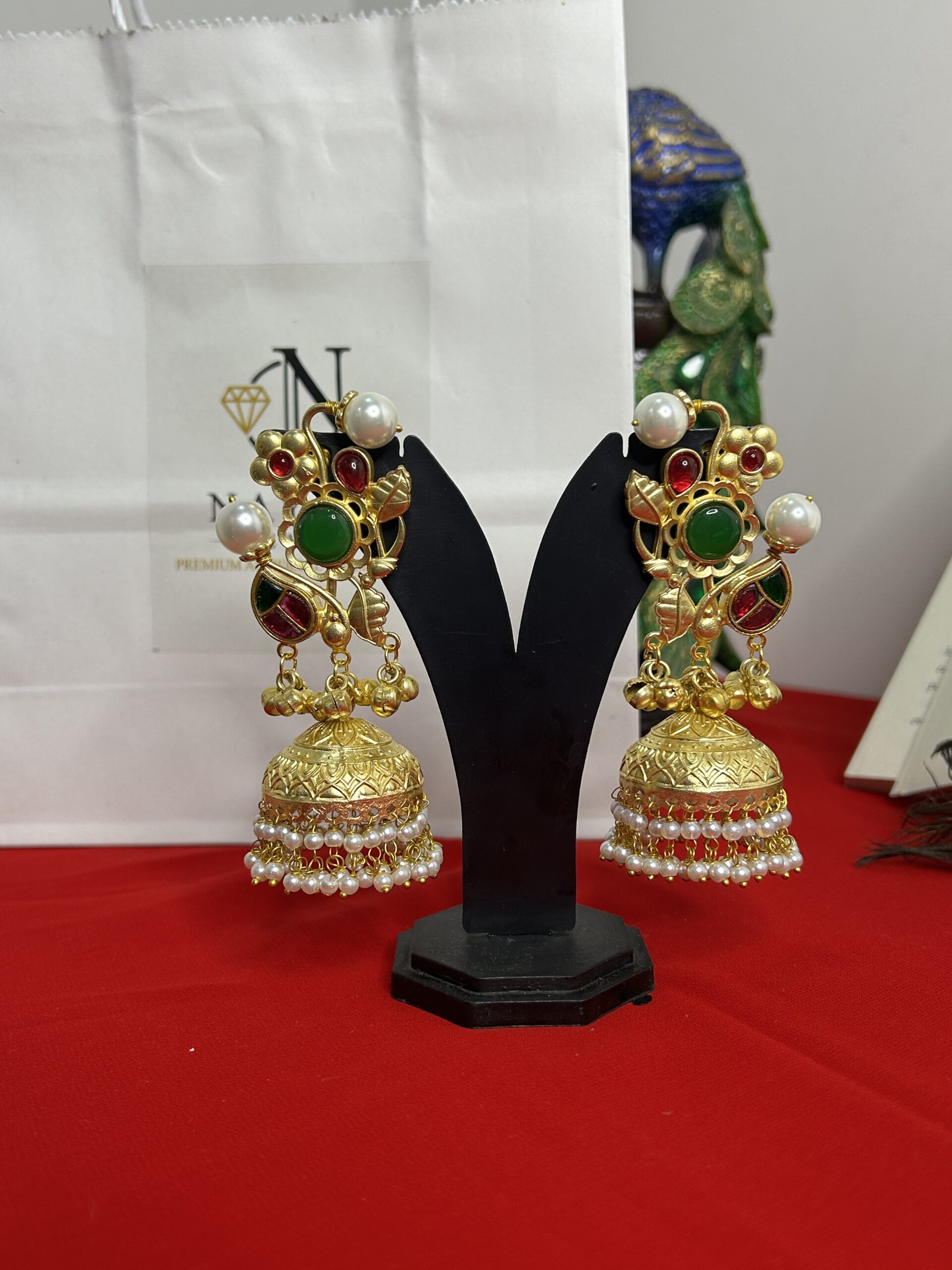 Earrings Showing 17–32 of 55 results Default sorting Sort by popularity Sort by average rating Sort by latest Sort by price: low to high Sort by price: high to low Kashmiri Black & Gold Statement Indian Jewelry ₹1,049.00 Add to cart Kashmiri Gold & Kundan Long Tassel Earrings ₹449.00 Add to cart Kashmiri Handcrafted Gold Earrings with Green Gem ₹899.00 Add to cart Kashmiri Rectangular Jhumka Drops ₹759.00 Add to cart Kashmiri Royal Zarin Empress Long-Saharas ₹699.00 Add to cart Kashmiri Shahzadi Jhumka drop ₹779.00 Add to cart Kashmiri Sultana Trinket Drapes ₹719.00 Add to cart Luminous Halo Statement Earrings ₹399.00 Add to cart Meenakari Floral Jhumka Earrings ₹799.00 Read more Mehfil Multicolor Danglers ₹779.00 Add to cart Moon Earrings with Maroon Stones and Colorful Pearl Clusters ₹869.00 Add to cart Multi-Tiered Ruby and Pearl Earrings ₹799.00 Add to cart Multicolor Green Heritage Chandeliers ₹849.00 Add to cart Multicolor Kundan Chandbali ₹399.00 Add to cart Noor-E-Siyah Pearl Chandbalis ₹569.00 Add to cart Premium Gold-Plated Kemp Jhumkas with Emerald Green & Ruby Red Accents ₹1,499.00 Add to cart ← 1 2 3 4 →