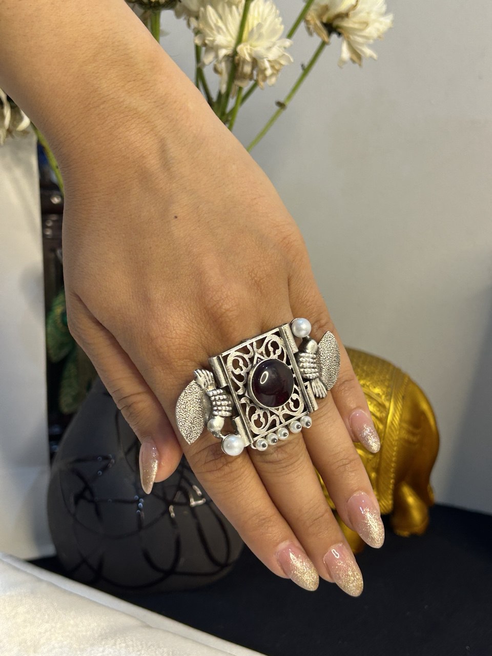 Adjustable Regal Lattice ring₹359.00 Adjustable Regal Lattice ring quantity Add to cart Categories: Oxidized Jewellery, Traditional Rings Reviews (0) Reviews There are no reviews yet. Be the first to review “Adjustable Regal Lattice ring” Cancel replyYour email address will not be published. Required fields are marked *Your rating * Rate… Perfect Good Average Not that bad Very poor Your review *Name * Email * Save my name, email, and website in this browser for the next time I comment. Δ Related products The Airavata Heritage Jhumkas ₹349.00 Add to cart The Emerald-Valli Botanical Drops ₹369.00 Add to cart Emerald patra dual tone drops ₹539.00 Add to cart Antique gold jhumkas ₹429.00 Add to cart