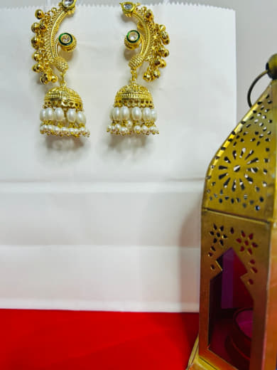Devgir Gold Drop Rani Meher earcuff₹959.00 Devgir Gold Drop Rani Meher earcuff quantity Add to cart Category: Earrings Reviews (0) Reviews There are no reviews yet. Be the first to review “Devgir Gold Drop Rani Meher earcuff” Cancel replyYour email address will not be published. Required fields are marked *Your rating * Rate… Perfect Good Average Not that bad Very poor Your review *Name * Email * Save my name, email, and website in this browser for the next time I comment. Δ Related products Antique Gold Floral Jhumkas ₹699.00 Add to cart The Rose Bloom Sahare Jhumkas ₹949.00 Read more Handcrafted Ethnic Green & Gold Kundan Earrings ₹549.00 Add to cart Rani Gulnaar Heritage Chandeliers ₹1,149.00 Add to cart