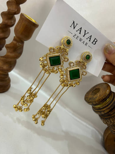 Be the first to review “Kashmiri Handcrafted Gold Earrings with Green Gem”