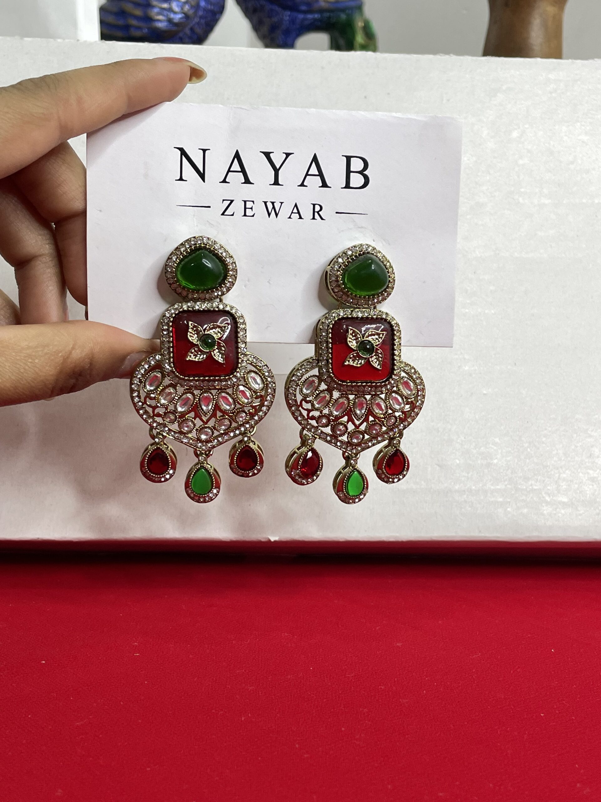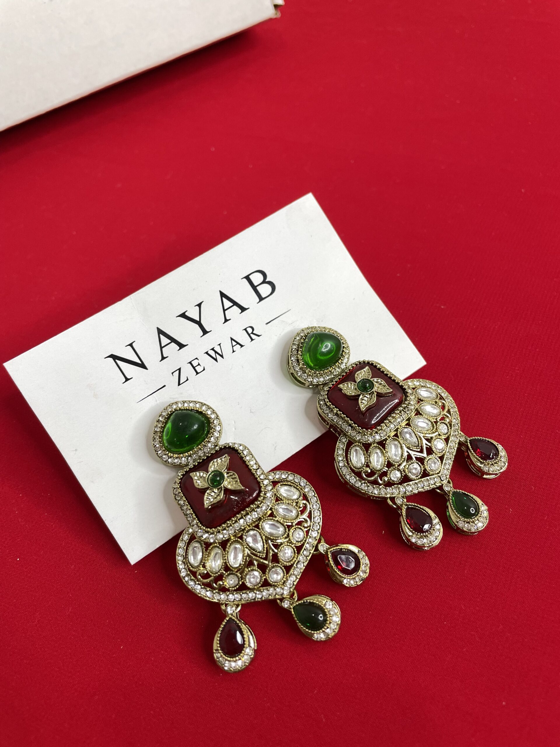 The Nayab Mehrunissa Drops₹849.00 Out of stock Category: Earrings Description Reviews (0) Description Reviews There are no reviews yet. Be the first to review “The Nayab Mehrunissa Drops” Cancel replyYour email address will not be published. Required fields are marked *Your rating * Rate… Perfect Good Average Not that bad Very poor Your review *Name * Email * Save my name, email, and website in this browser for the next time I comment. Δ Related products Green and maroon chandbali with pearls ₹549.00 Add to cart Kashmiri Black & Gold Statement Indian Jewelry ₹1,049.00 Add to cart Elegant Red Beaded Tassel Earrings with Pearl Accents ₹899.00 Add to cart Handcrafted Ethnic Green & Gold Kundan Earrings ₹549.00 Add to cart
