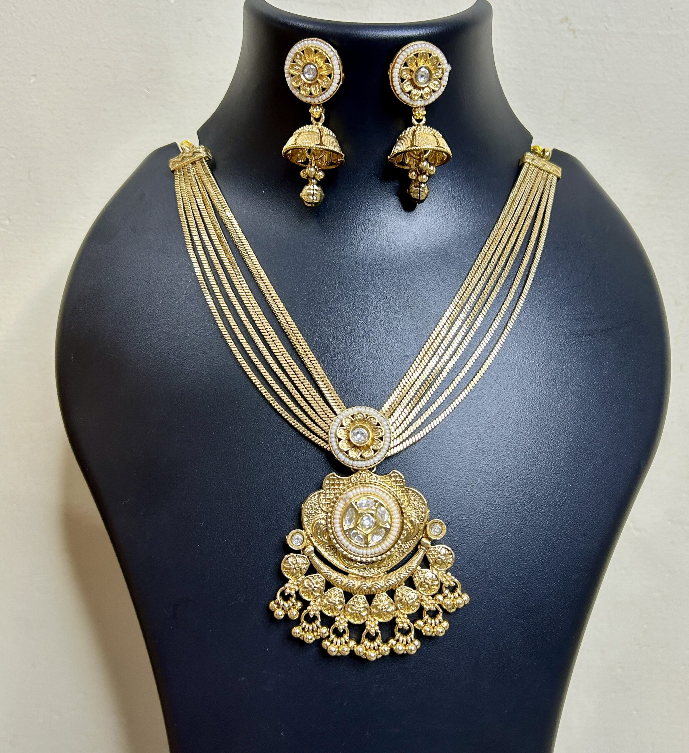 Timeless Gold Choker Set with Antique Finish₹1,449.00 Timeless Gold Choker Set with Antique Finish quantity Add to cart Category: Neck Pieces Description Reviews (0) Description Reviews There are no reviews yet. Be the first to review “Timeless Gold Choker Set with Antique Finish” Cancel replyYour email address will not be published. Required fields are marked *Your rating * Rate… Perfect Good Average Not that bad Very poor Your review *Name * Email * Save my name, email, and website in this browser for the next time I comment. Δ Related products Forest Pearl Duo ₹449.00 Read more Vintage-Inspired Emerald Green Teardrop Choker ₹1,299.00 Add to cart AD gold regalia ₹2,099.00 Add to cart The Inayat Mahal-e-Noor Choker ₹1,549.00 Add to cart